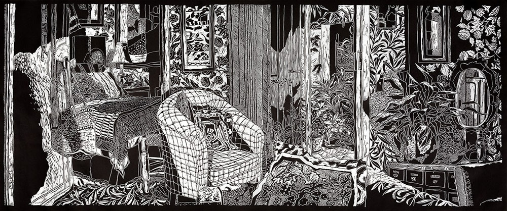 Her artmaking, while print based, acknowledges the themes and practices of earlier women artists and artisans; employing techniques of printmaking, collage, embroidery, and installation to engage her audience in conversations about the nature of art.