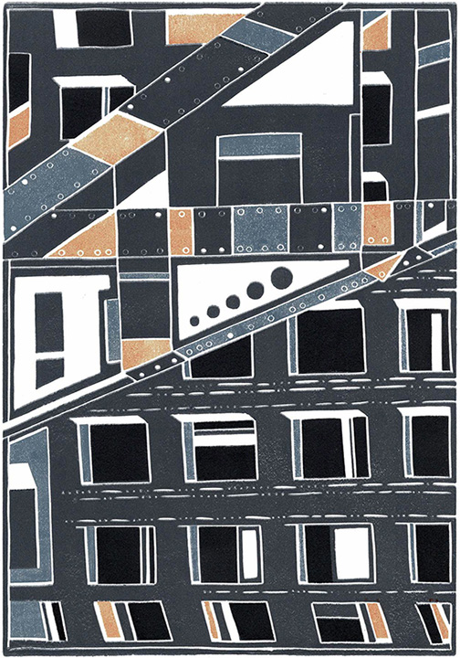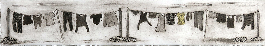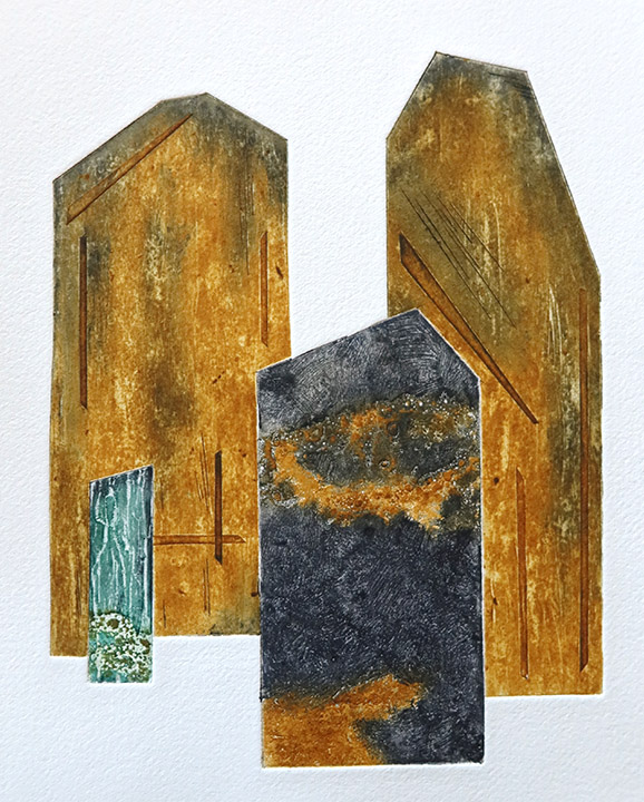 Within the field of printmaking I find myself drawn in particular to collagraphs; the building of a matrix surface, exploring tonal variation and placement of components to produce imagery is a constant fascination.