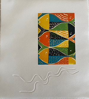 My printmaking practice is, I think, eclectic, and rarely representational. I draw inspiration from my home, nature, current events, songs, myths and legends, architecture, shapes and lines I see around me.