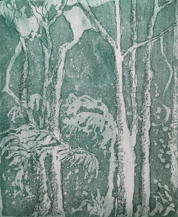 Photosensitive etching, monotype, etching and aquatinting are my preferred modes of working but I am always open to experimentation and exploration of other techniques.
