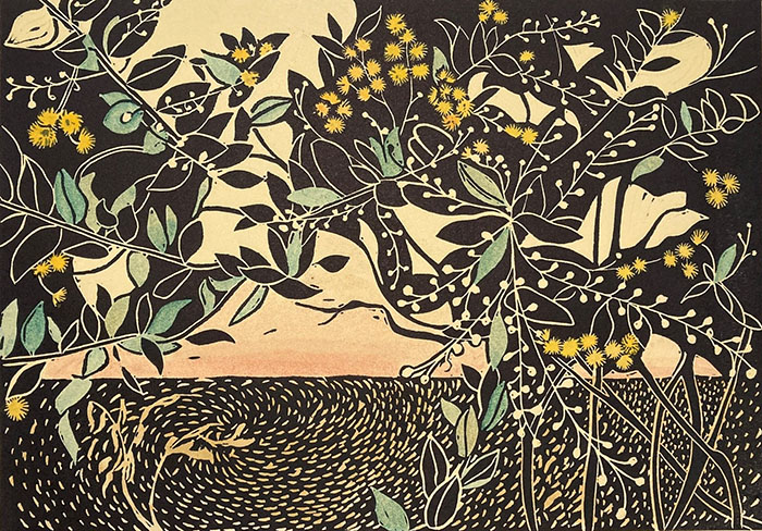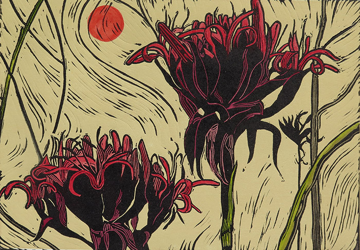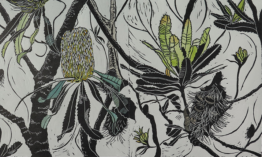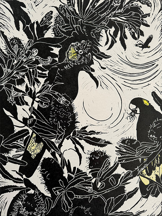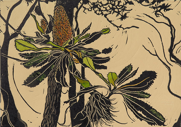 Stephanie translates her experiences in local bushland primarily through the medium of linocut printmaking.