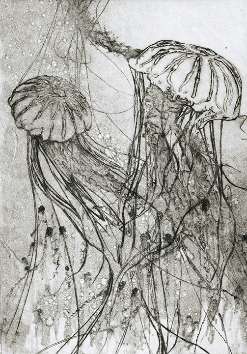 I love printmaking in all its forms and enjoy drypoint etching, collagraphs and reduction lino prints. I particularly like the effects achieved with solar plate etching.